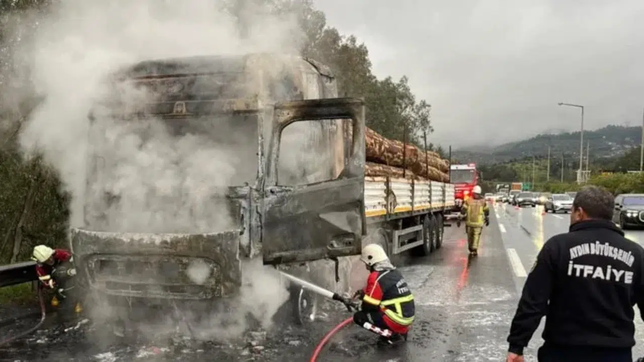 Yangının tünel yakınında olması ve yükün yanıcı tomruklardan oluşması nedeniyle bölgeye hem Aydın hem de İzmir Büyükşehir Belediyesi İtfaiye Daire Başkanlığı ekipleri sevk edildi. Olay yerine kısa sürede ulaşan ekipler, alevlerin dorse kısmındaki tomruklara tamamen sıçramasını engellemek için yoğun çaba sarf etti. Ekiplerin koordineli müdahalesiyle kontrol altına alınan yangın, tırda büyük çaplı maddi hasara yol açtı.