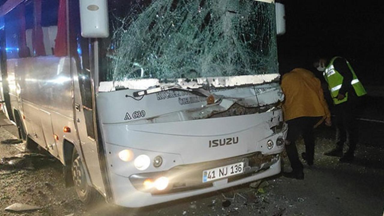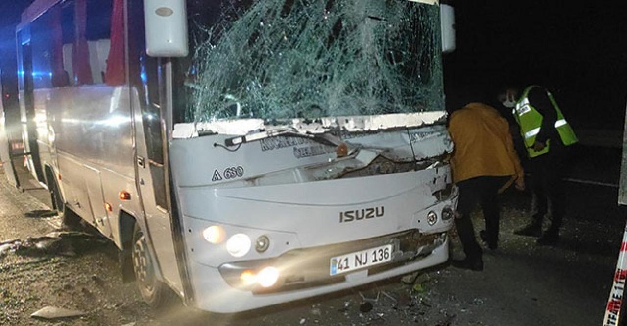 Kaza, akşam saatlerinde D- 100 karayolu Kartepe geçişi Akmeşe Sapağı mevkisinde meydana geldi. Selahattin Gül yönetimindeki 41 NJ 136 plakalı İzmit- Eşme arasında sefer yapan özel halk otobüsü, önünde seyreden Erhan T. idaresindeki 03 LB 282 plakalı TIR’a arkadan çarptı. Kazayı görenlerin ihbarıyla bölgeye polis, itfaiye ve sağlık ekipleri sevk edildi.
