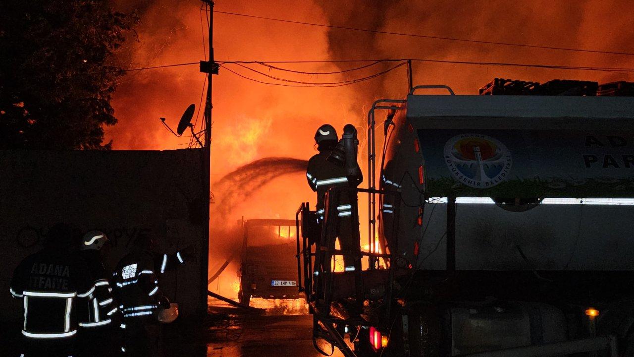 Adana'da tahta palet imalathanesindeki yangın, itfaiye ve polis ekiplerinin yaklaşık 2 saat süren çalışmasıyla kontrol altına alındı.