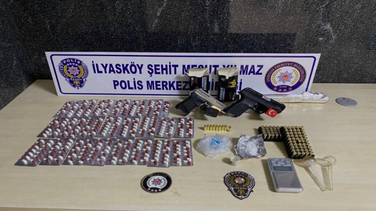 İl Emniyet Müdürlüğü İlyasköy Polis Merkezi Amirliği ekipleri, İlkadım ilçesi Hilal Sokak'ta devriye gezerken, şüpheli gördükleri otomobili durdurdu. Ekiplerin araçta yaptığı aramada 313 kapsül sentetik hap, 20 gram metamfetamin, 30 ecstasy hap, 1 çalışır vaziyette hassas terazi, 1 ruhsatsız tabanca ve şarjör ile 119 mermi ve 1 kurusıkı tabanca ele geçirildi. Olayla ilgili araçtaki 5 kişi gözaltına alındı.