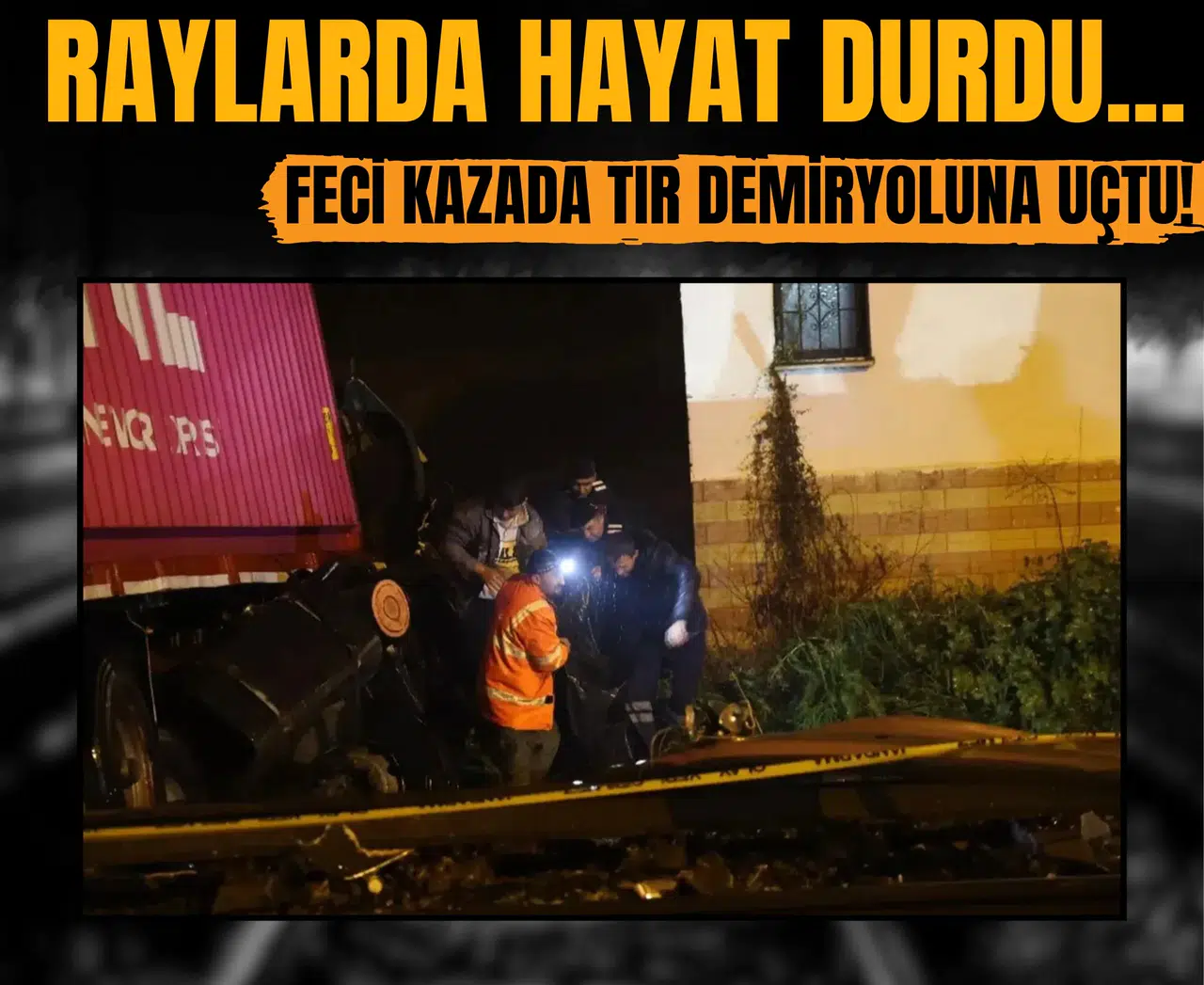 Aydın’ın Efeler ilçesinde gece saatlerinde meydana gelen kazada bir tır, demiryoluna uçtu. Sürücü olay yerinde hayatını kaybederken, Aydın-Denizli tren seferleri karşılıklı olarak iptal edildi.