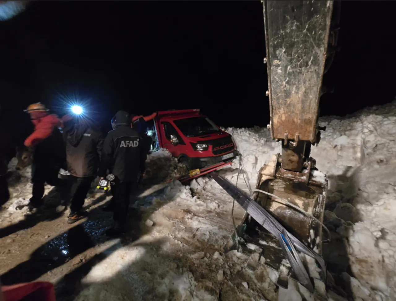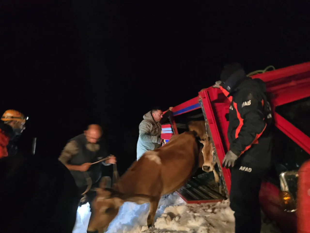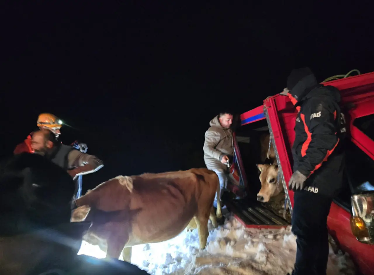 Yapılan çalışmalar sonucu mahsur kalan 15 kişi ile kamyonet ve içerisindeki hayvanlar kurtarıldı.