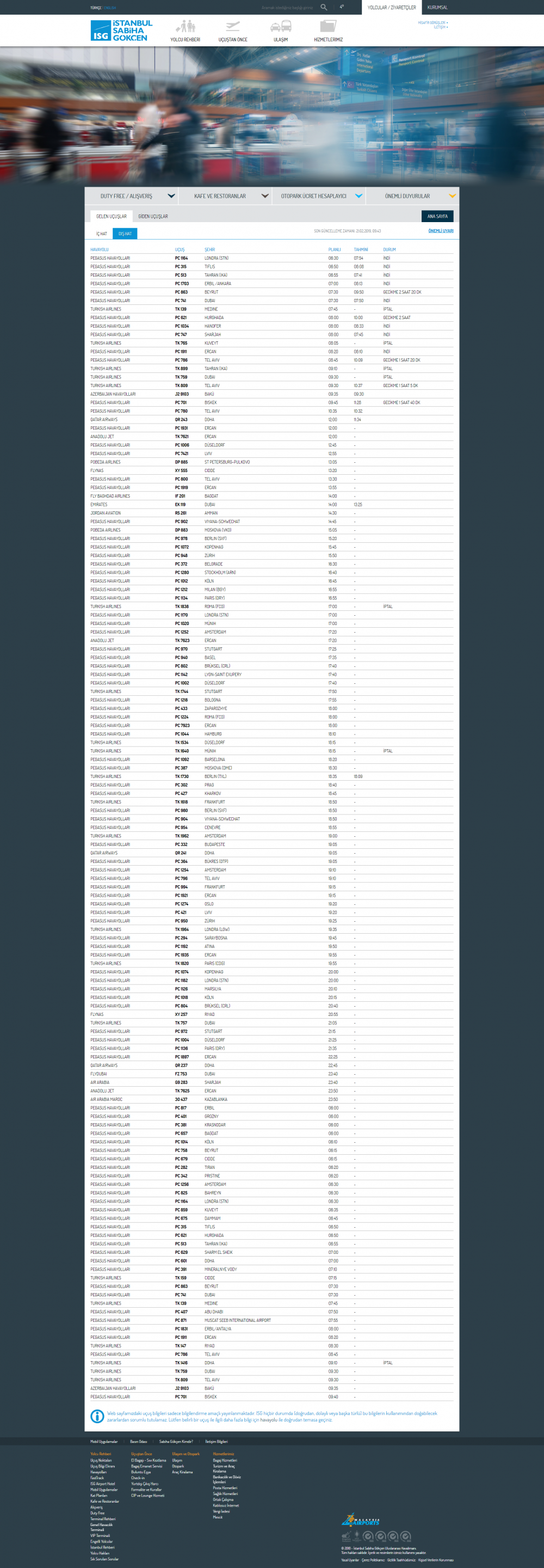 Sabiha Gökçen Havalimanı iç hat seferleri - Geliş