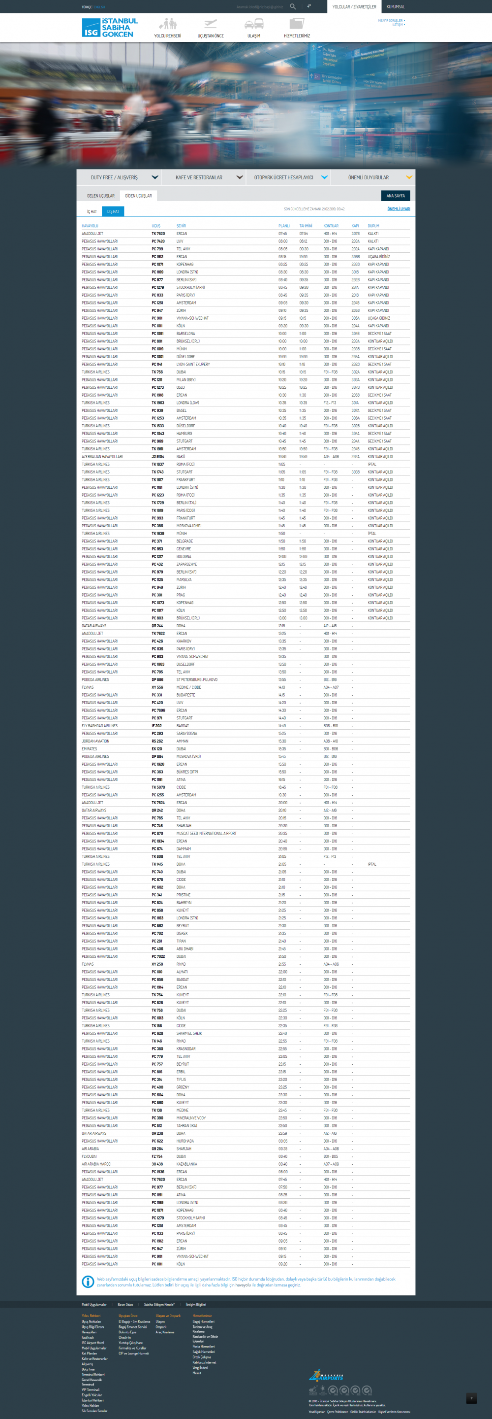 Sabiha Gökçen Havalimanı iç hat seferleri - Gidiş