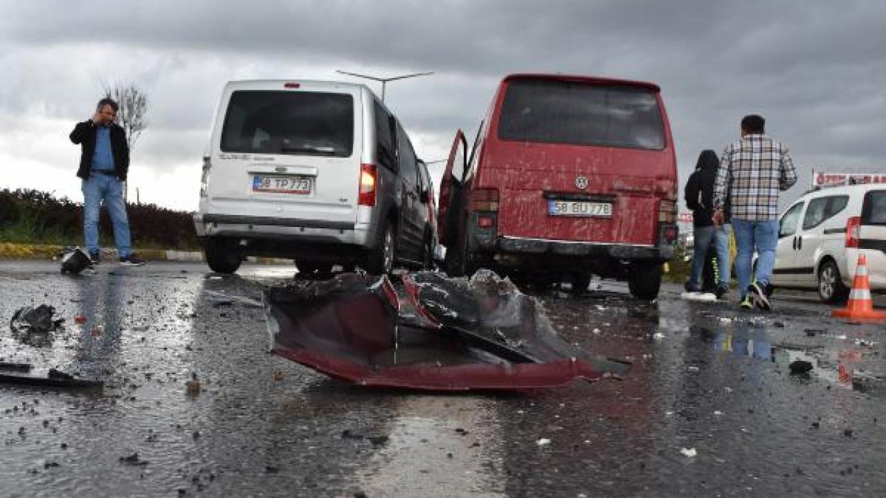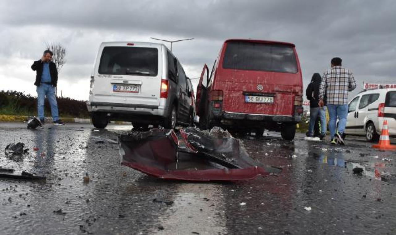 Aniden etkili olan sağanak nedeniyle kayganlaşan yolda, 4 hafif ticari araç, 2 otomobil ve 1 minibüs birbirine çarptı. Hasarlı kaza nedeniyle Sivas-Ankara kara yolu kısa süreliğine trafiğe kapandı.