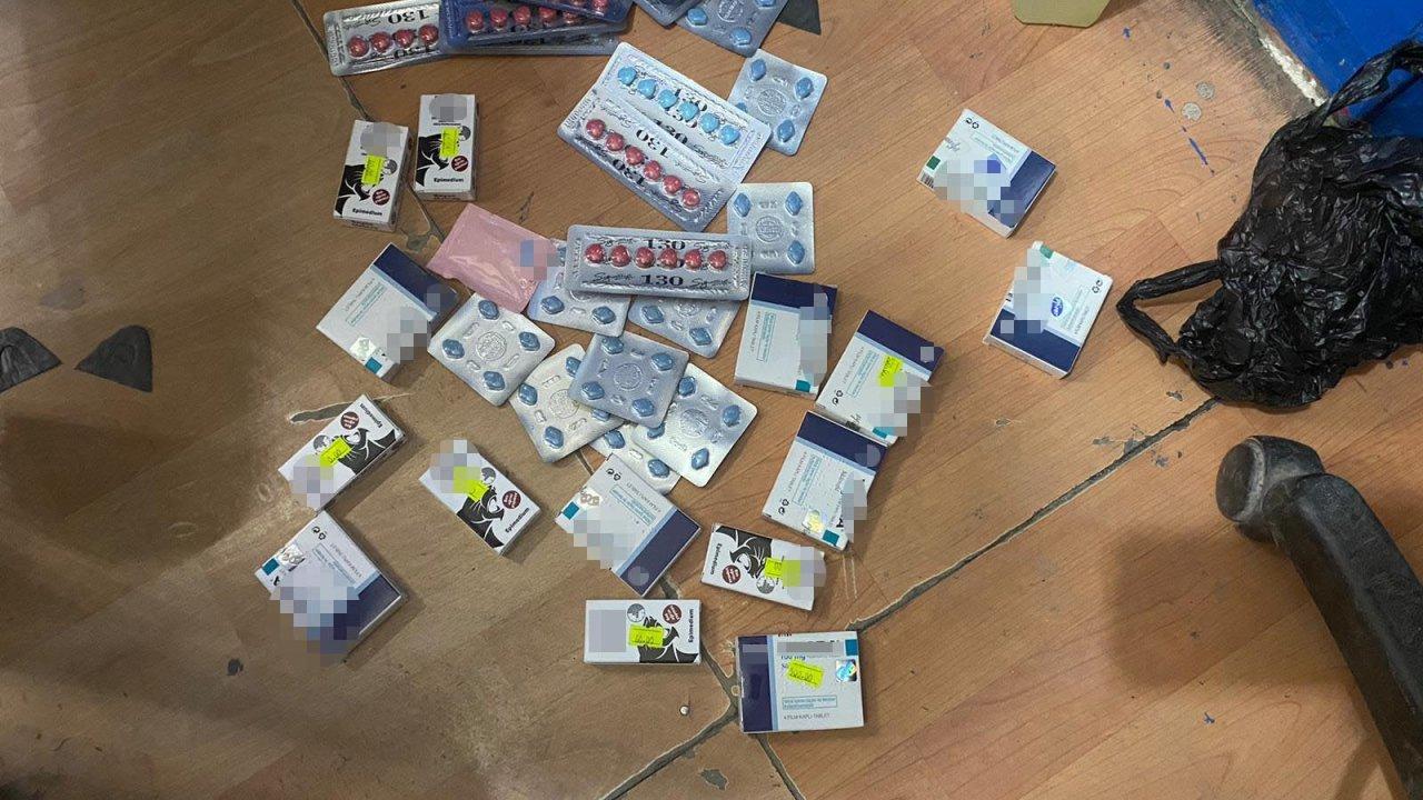 Şüpheliler takibe alınırken, 2 ev ve 1 iş yerine polis ekipleri baskın yaptı. Evlerdeki aramalarda 136 cinsel gücü artıran hap, 17,5 litre sahte alkol, kurusıkı tabanca, 5 litrelik plastik şişede alkol ele geçirildi.