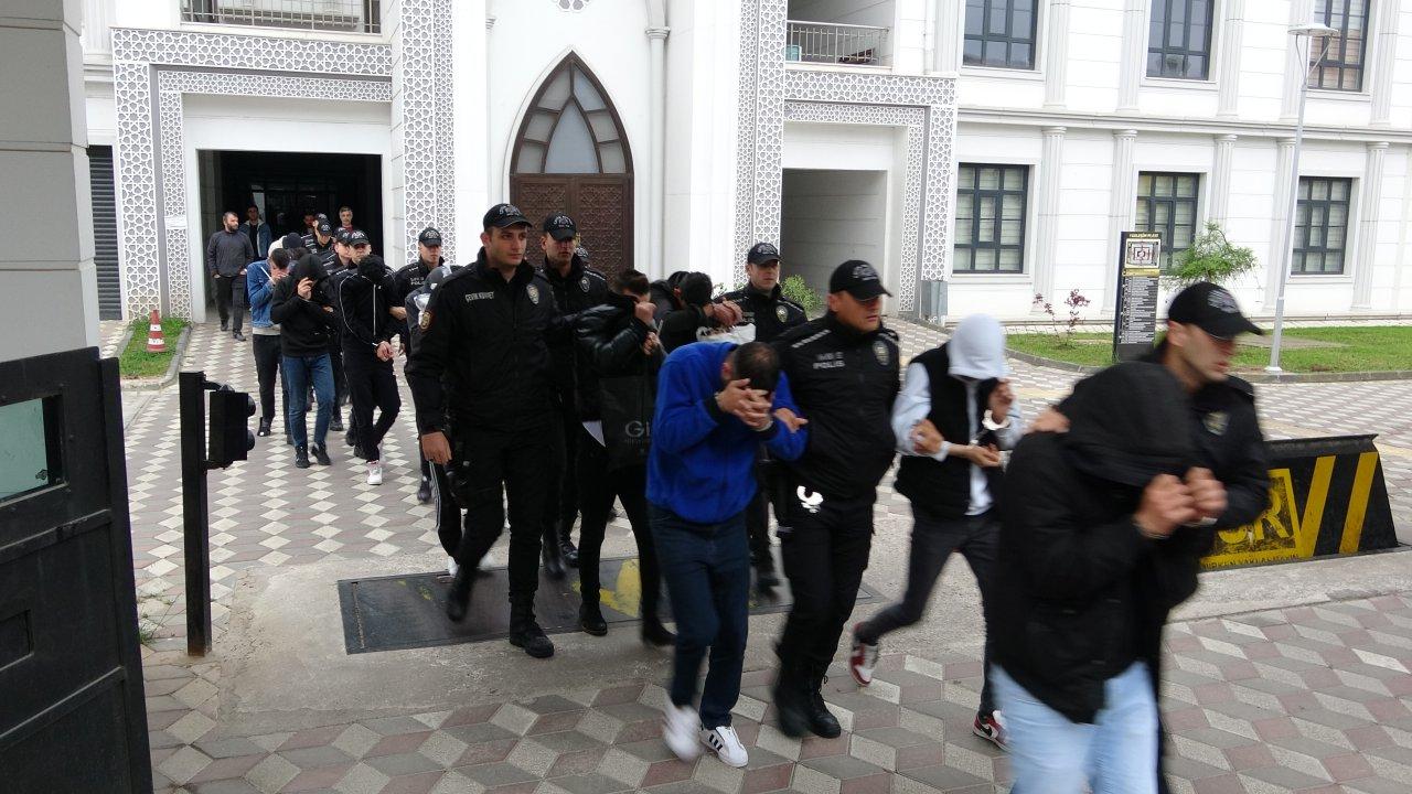 Kocaeli Emniyet Müdürlüğü'ne getirilen 24 şüpheli buradaki işlemlerinin ardından Gebze Adliyesi'ne sevk edildi.