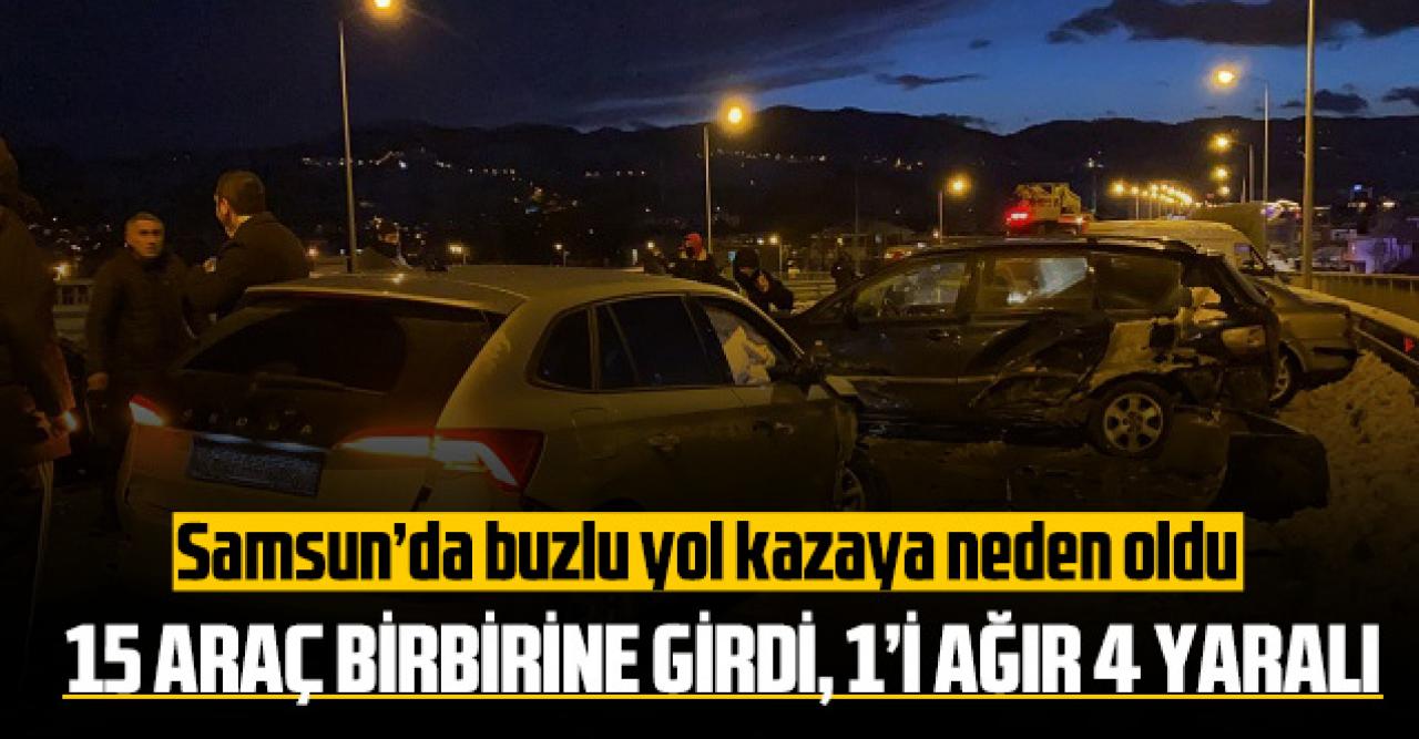 Kaza, saat 18.00 sıralarında Tekkeköy ilçesi Gelemen mevkisinde meydana geldi. Çarşamba'dan Samsun istikametine seyir halinde bulunan ve henüz sürücüsü öğrenilemeyen TIR, kontrolden çıkarak korkuluklara çarptı. Bu sırada arkasından seyir halinde bulunan bir başka TIR, 4 kamyonet, 1 minibüs ve 8 otomobil de buzlanma sonucu birbirine çarparak durabildi. Kazada, 1'i ağır 4 kişi yaralandı. Yaralılar, ihbar üzerine bölgeye gelen ambulanslarla kentte bulunan çeşitli hastanelere kaldırıldı.