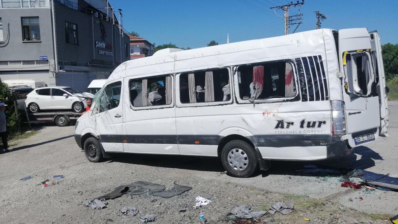 Samsun'un Çarşamba ilçesinde işçileri taşıyan servis minibüsü ile otomobilin çarpıştığı kazada, 19 kişi yaralandı.