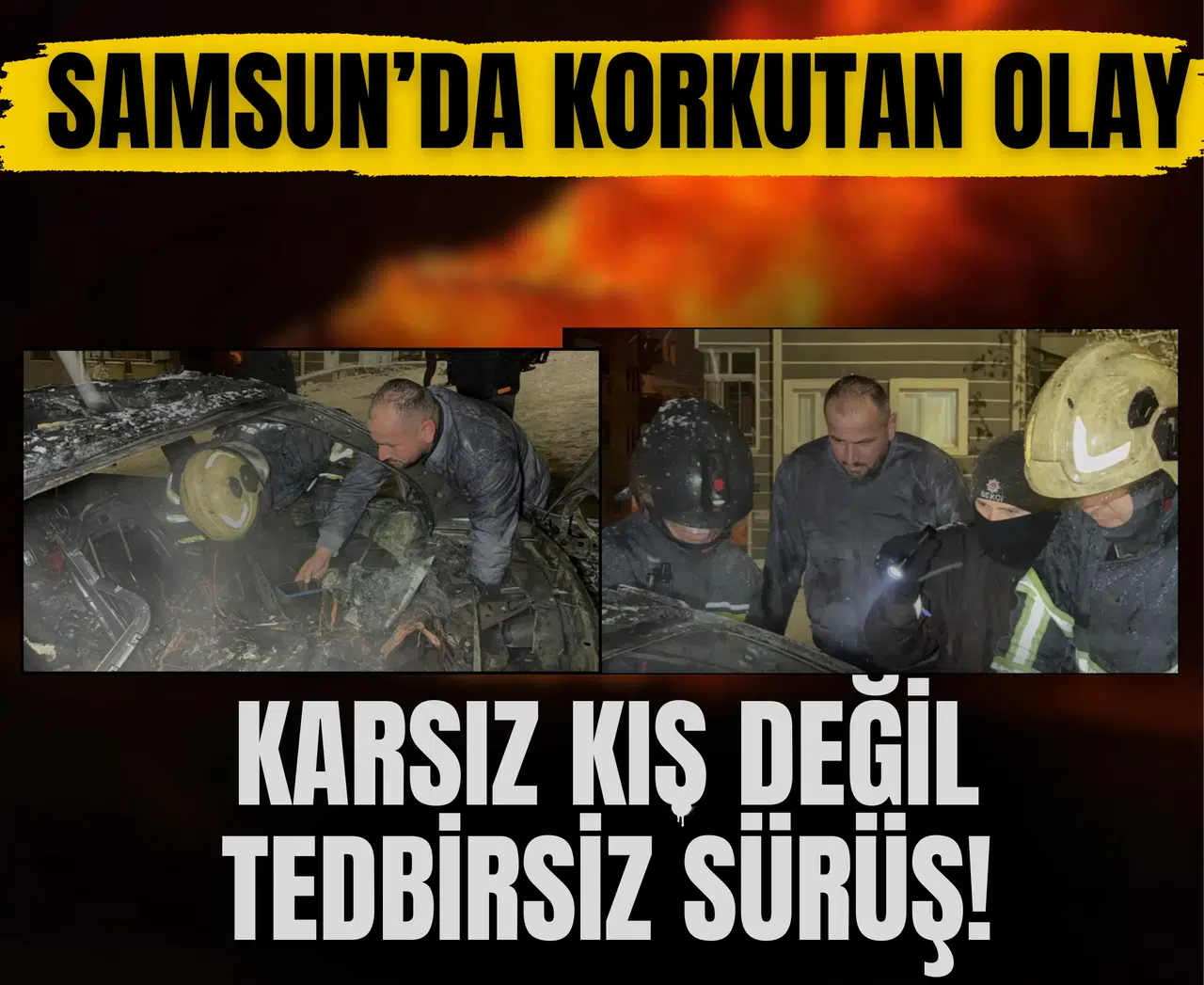 İhbar üzerine olay yerine polis ve itfaiye ekipleri sevk edildi. Samsun Büyükşehir Belediyesi İtfaiye Daire Başkanlığı ekipleri, kaygan yol nedeniyle yanan aracın yanına çıkamayınca hortum uzatarak yangına müdahale etti. Ekipler yangını kontrol altına alarak söndürdü.