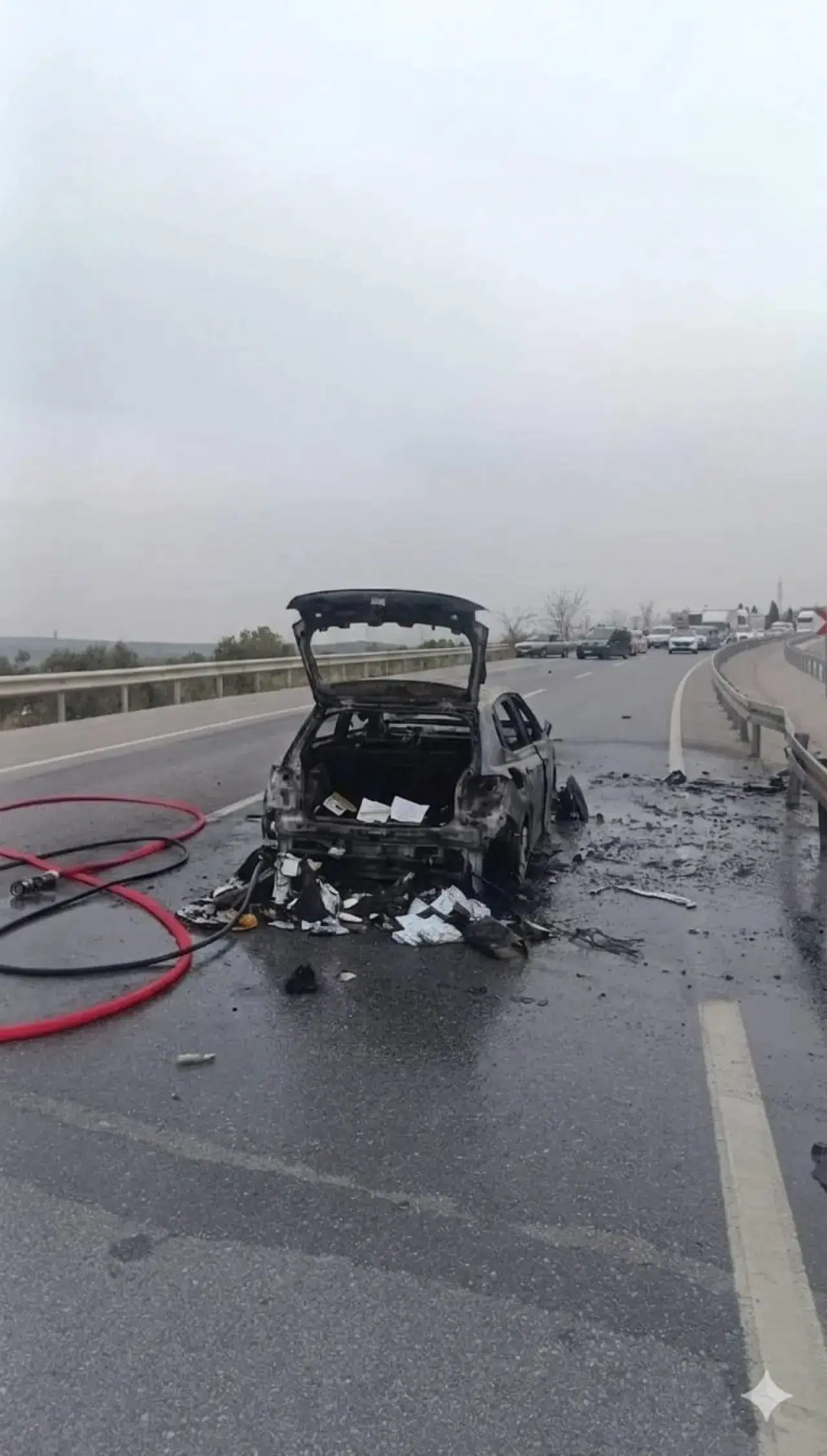 Alevlerin kısa sürede kabini sarmaya başladığı o anlarda, sürücü N.Ç. büyük bir soğukkanlılıkla kendisini araçtan dışarı atmayı başardı. Adeta canını dişine takarak alev topuna dönen otomobilden uzaklaşan sürücü, kazayı şans eseri hafif sıyrıklarla atlattı. Olay yerine gelen sağlık ekipleri, sürücünün durumunun iyi olduğunu bildirdi.