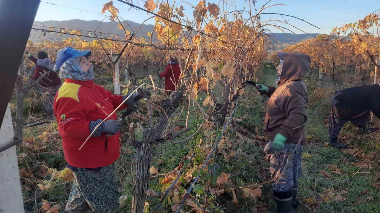 Bağ yenileme kapsamında kadın tarım işçileri, budama ve kesim işlemlerinde yoğun mesai harcıyor. Dayıbaşı Necati Paracı ile birlikte üzüm bağlarına giden kadın işçiler, yenilenecek bağlarda asmaların budamasını gerçekleştirerek çalışmalara başladı.