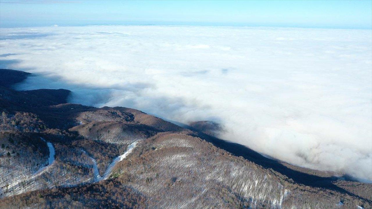 Samanlı Dağları'nın eteklerine bakanlar, karlı dağların ardındaki İzmit Körfezi ve Sapanca Gölü'nün "sis denizi"yle kaplandığını gözlemledi.