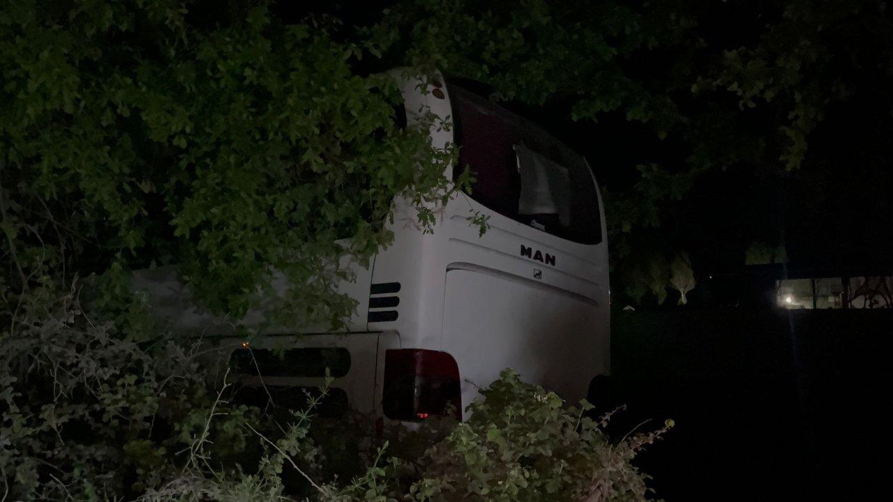 Bursa'da, sürücüsünün kontrolünden çıkan servis otobüsü yol kenarındaki araziye girdi.