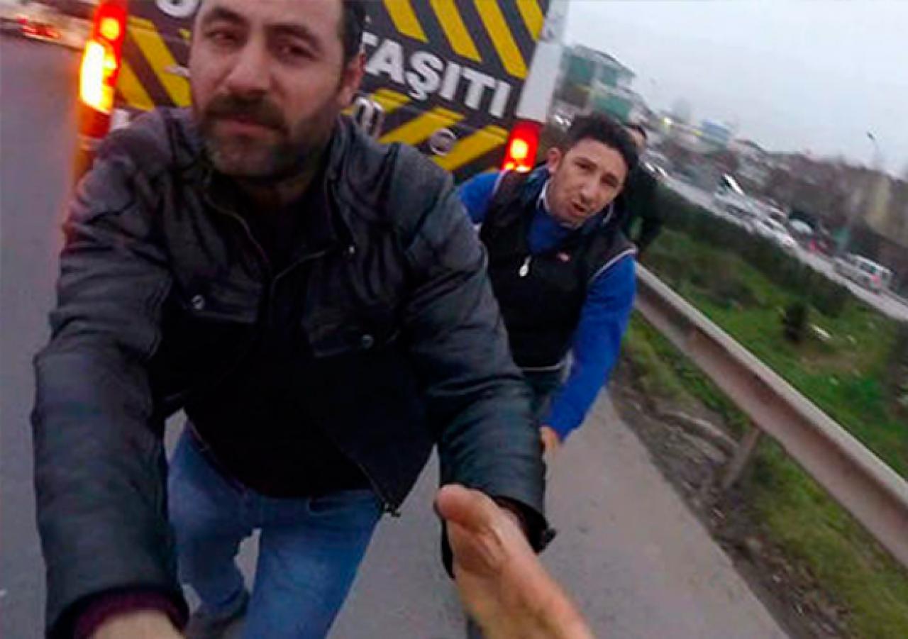 TEM otoyolu Samandıra mevkisinde bir motosiklet sürücüsü yolda ilerlerken arkadan bir servis şoförünün kendisine çok yaklaştığını iddia edip tepki gösterdi. Bunun üzerine servis şoförü aracını motosikletin önünde durdurdu.