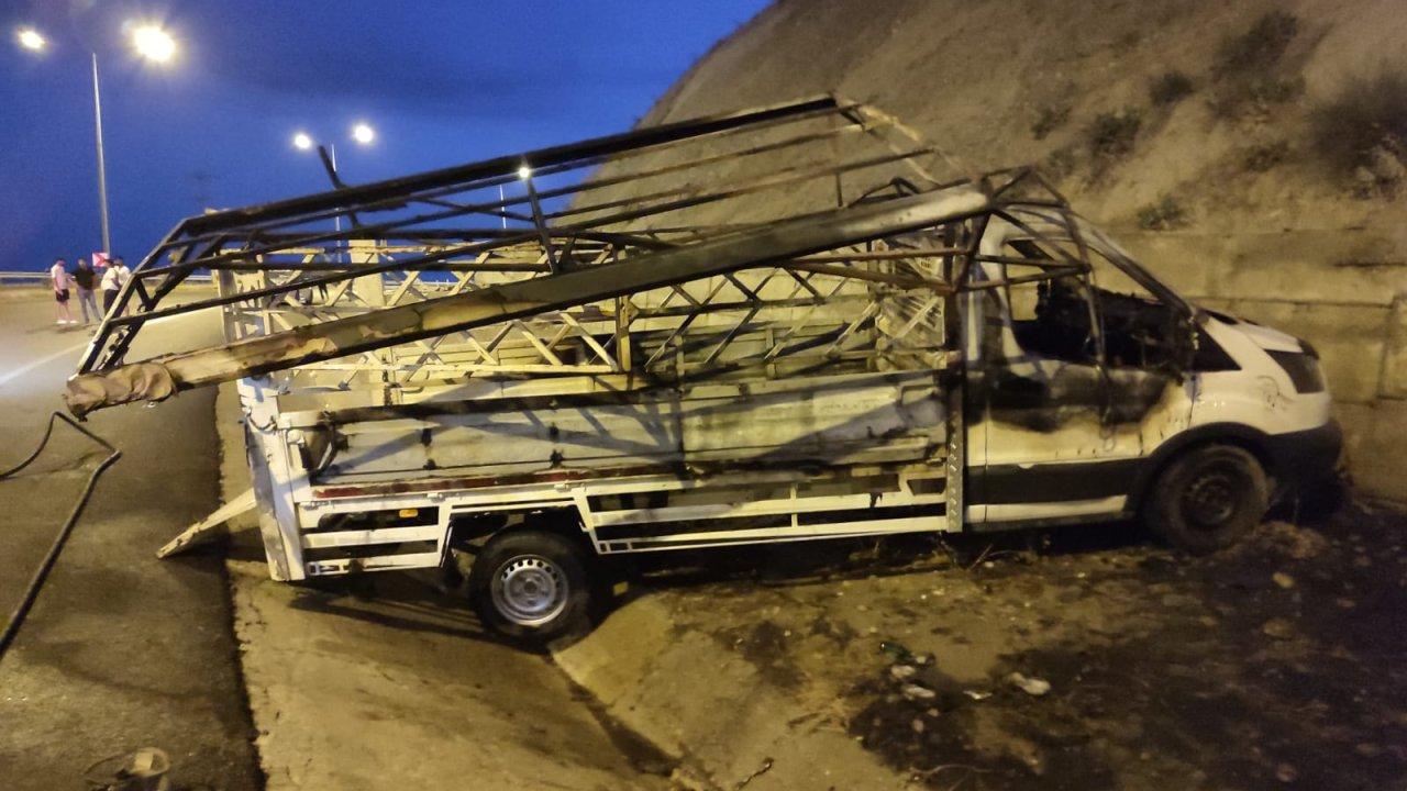 Siirt'te seyir halinde alev alan kamyonet yanarak kullanılamaz hale geldi.
