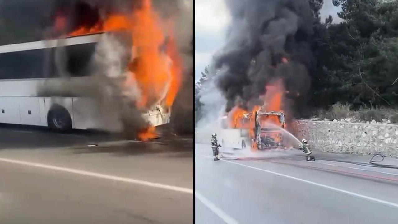 Bursa'da, fabrika işçilerini taşıyan servis otobüsü seyir halindeyken alev aldı. İşçiler tahliye edilirken, yangın itfaiye ekipleri tarafından söndürüldü.
