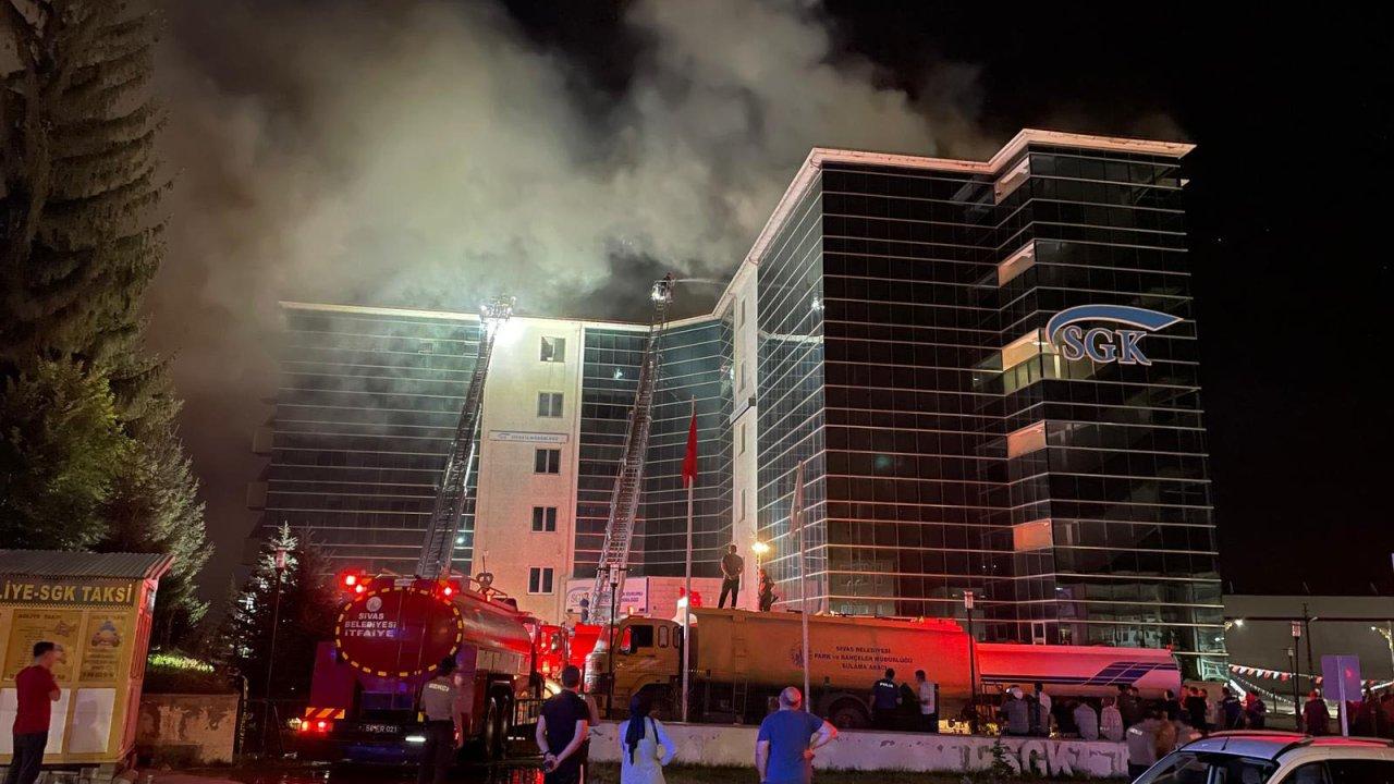 Yangın, saat 20.00 sıralarında Kümbet Mahallesi Gültepe Caddesi üzerinde bulunan SGK İl Müdürlüğü binasının çatısında çıktı. 6 katlı binanın çatısından duman çıktığını gören çevredekiler, durumu itfaiyeye bildirdi. Olay yerine kısa sürede Sivas Belediyesi'ne ait çok sayıda itfaiye ekibi sevk edildi. Yangında binada görevli bir güvenlik ile alevlere müdahale eden bir itfaiye eri dumandan etkilendi. Dumandan etkilenenlere olay yerindeki ambulansta müdahale edildi. Yangının çıkış sebebi henüz belirlenemezken, itfaiye ekiplerinin söndürme çalışmaları devam ediyor.