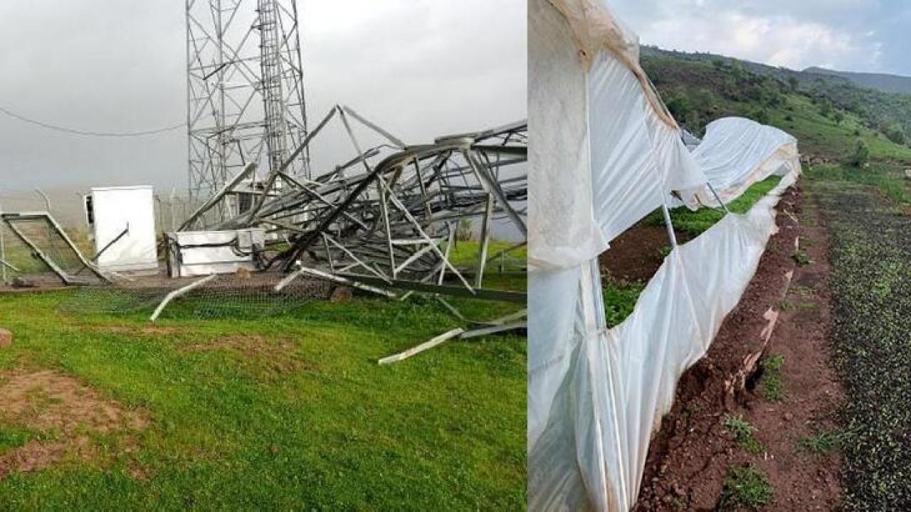 DHA- Siirt'te dün geceden itibaren etkili olan sağanak ve kuvvetli rüzgar, sabah saatlerinde etkisini artırdı. Birçok ilçede etkili olan sağanak ve kuvvetli rüzgarla birlikte, Pervari ilçesi Tosuntarla köyünde yaklaşık 100 metre uzunluğundaki baz istasyonu direği, fıstık bahçesine devrildi. Köyde şebeke sorunu yaşanırken, fıstık ağaçları da zarar gördü. Baykan ilçesi Ulaştı köyünde de etkili olan rüzgarda, çiftçilerin sebze fidesi yetiştirdiği seralar zarar gördü.