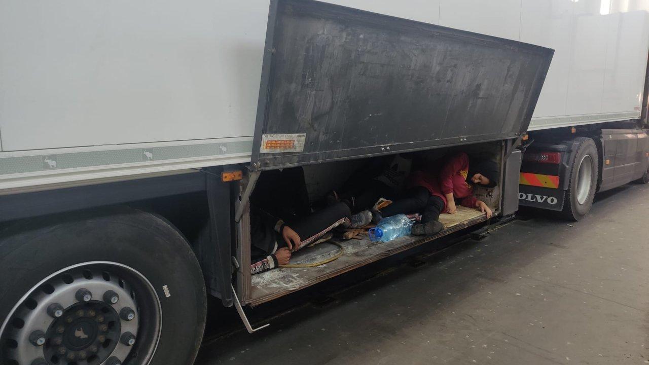 Risk kriterleri kapsamında TIR, x-ray taramasına sevk edildi. Yoğunluk tespit edilen TIR'da ekiplerce arama yapıldı. Aramada yasa dışı yollarla Yunanistan'a çıkış yapmak için TIR'ın dorsesindeki yemek dolabına gizlenmiş Filistin ve Mısır uyruklu 1'i kadın 4 kaçak göçmen yakalandı. Yakalanan kaçak göçmenler, işlemlerinin ardından İl Göç İdaresi Müdürlüğü'ne gönderildi. TIR sürücüsü D.P., gözaltına alındı.
