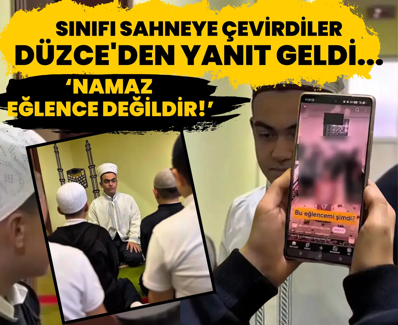 Bazı sosyal medya platformlarında lise çağındaki öğrencilerin, namaz ile alay eden akım videoları çekmesine Düzce’de imam hatip öğrencileri, yine video çekerek cevap verdi. Öğrenciler ‘Geçici akımlar için, kalıcı değerlerimizi feda etmeyelim" dediler. Ülke genelinde son günlerde akım adı altında bazı lise öğrencileri namaz ile alay edip, sınıflarında namaz kılıyor gibi yaparak, bu videoları paylaşmaya başladılar. Kamuoyunun tepkisini çeken akım adı altındaki namazla alay videolarına cevap Düzce’nin Gölyaka İlçesi’nde bulunan Gölyaka 15 Temmuz Şehitleri Anadolu İmam Hatip Lisesi öğrencilerinden yine videoyla geldi.
