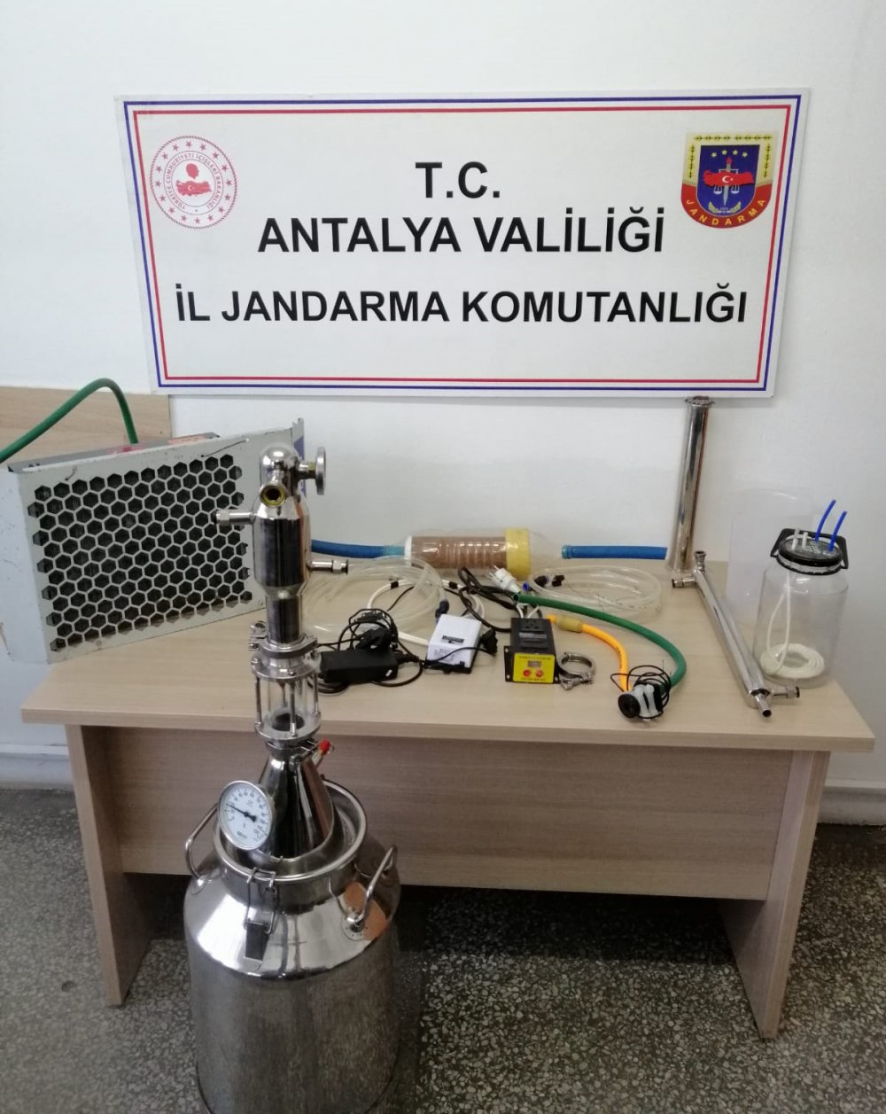 Antalya İl Jandarma Komutanlığı ekipleri, sosyal medya hesabından yaptığı paylaşımlarla sahte içkinin nasıl imal edileceğini anlatan A.Ç.'yi takibe aldı. Şüphelinin Muratpaşa ilçesinde oturduğunu belirleyen ekipler, evine baskın yaptı. Gözaltına alınan A.Ç.'nin evinde sahte içki üretiminde kullanılan düzenek ve malzemeler ele geçirildi.
