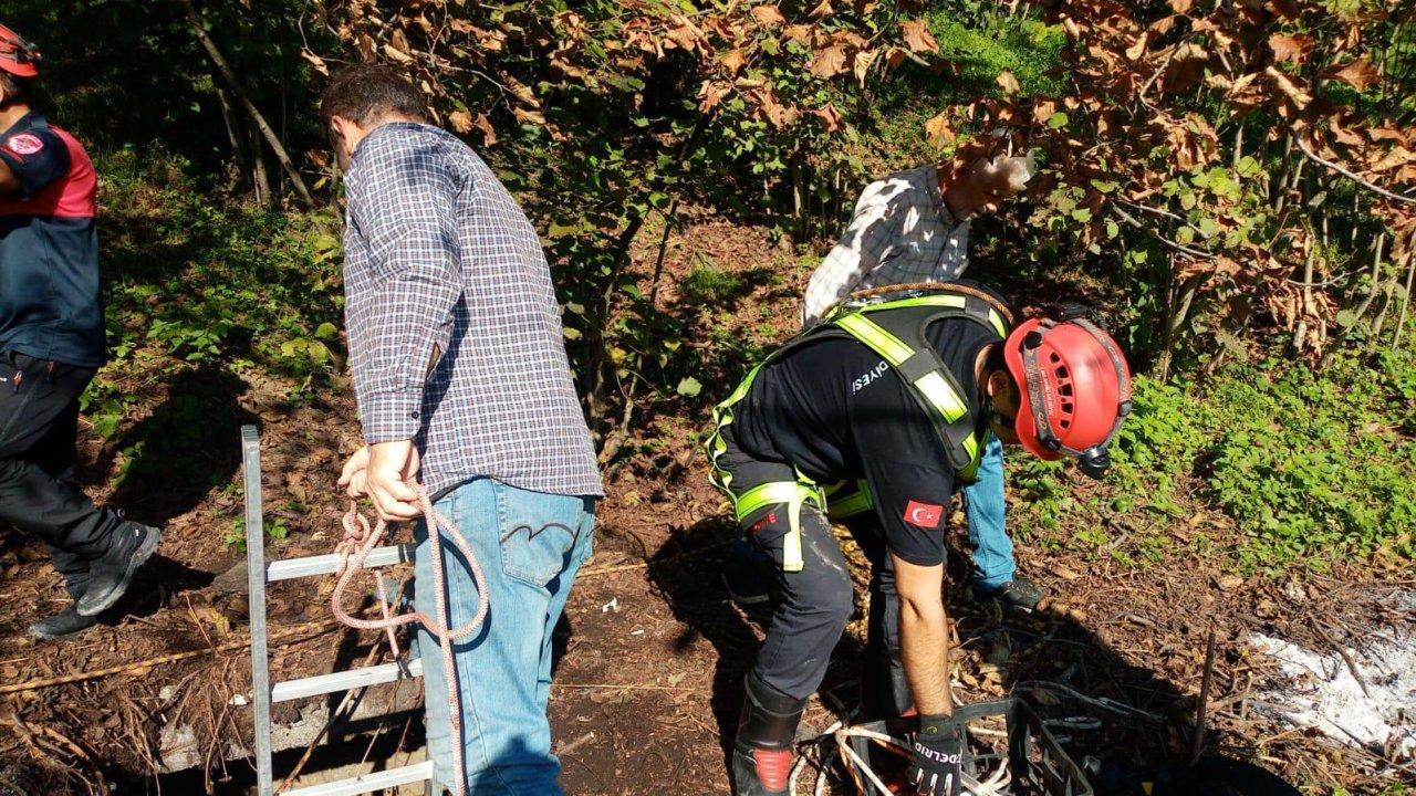 Kediyi kurtaramayınca köylüler, itfaiyeden yardım istedi. İhbar üzerine bölgeye Ereğli Belediyesi İtfaiye Müdürlüğü ekipleri sevk edildi. Gelen ekipler, 9 metre derinliğindeki kuyuya merdivenle inip kediyi çıkardı.