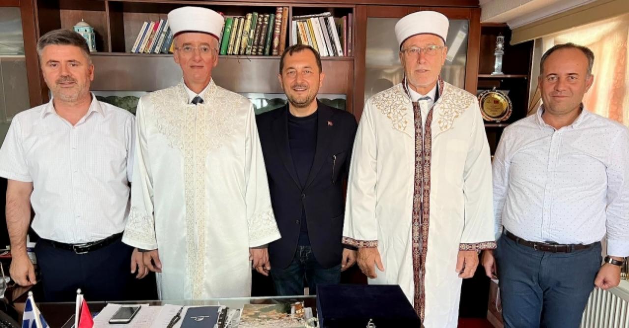 Başkan Yüksel, Yunanistan temasları sırasında, Mustafçova Belediye Başkanı Rıdvan Deli Hüseyin’i makamında ziyaret etti. Mevkidaşı ile ortak yürütülebilecek projeler hakkında fikir alışverişi gerçekleştiren Yüksel, Hüseyin’e nazik daveti ve hoş ağırlaması için teşekkür etti. Yüksel daha sonra Gümülcine Seçilmiş Müftüsü İbrahim Şerif ve İskeçe Seçilmiş Müftüsü Mustafa Trampa ile İskeçe Müftülüğünde bir araya geldi. Balkan coğrafyasının kanaat önderleri olarak da hizmet veren müftülerle çeşitli konularda işbirliği üzerine istişarede bulunan Başkan Yüksel, Balkanlarda yaşayan soydaşlarımızın hakları için verdikleri mücadeleden ve gösterdikleri misafirperverlikten ötürü şükranlarını sundu.