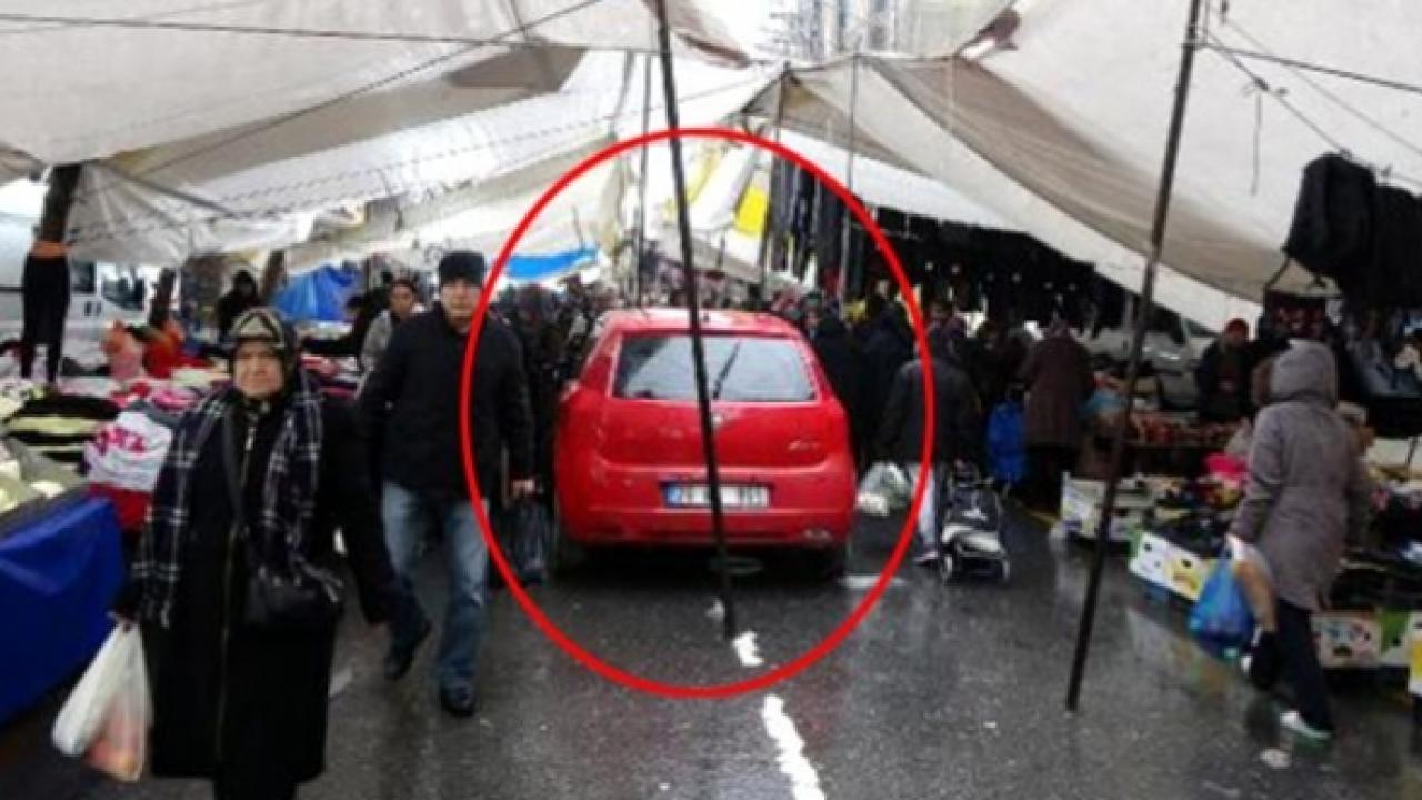 Cebeci Mahallesi'nde kurulan semt pazarına, sabah erken saatlerde tezgahlarını kurmaya gelen esnaf, park halindeki otomobil engeline takıldı. Esnaf, sahibine ulaşamadığı otomobili, el birliğiyle park edildiği yerden kaldırıp pazarın ortasına itti.