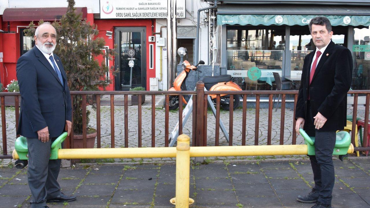 Ordu'da seçim çalışması yaptıkları sırada parkta karşılan ve birlikte tahterevalliye binen Demokrat Parti (DP) Ordu Büyükşehir Belediye başkan adayı Serhat Çelebioğlu ile Saadet Partisi (SP) Ordu Büyükşehir Belediye başkan adayı Halit Duyar, gazetecilere açıklamada bulundu.