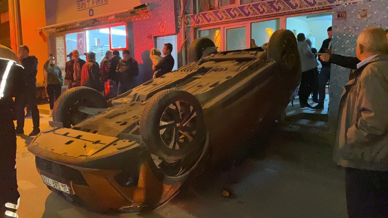 Sürücü Ersin Ç. yaralanırken, çay ocağının önünde oturan vatandaşlar otomobilin altında kalmaktan son anda kurtuldu.