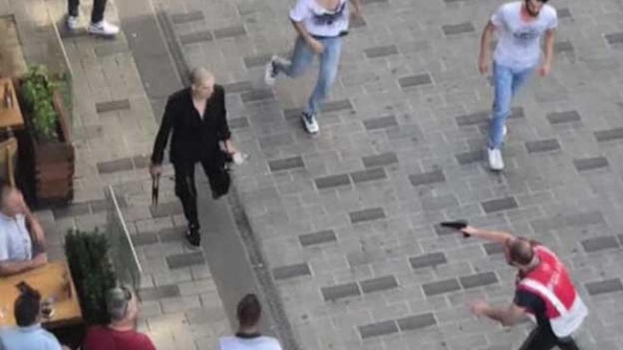 Taksim'de iki grup arasında makas ve bıçakların kullanıldığı kavgaya polis silah çekerek müdahale etti.