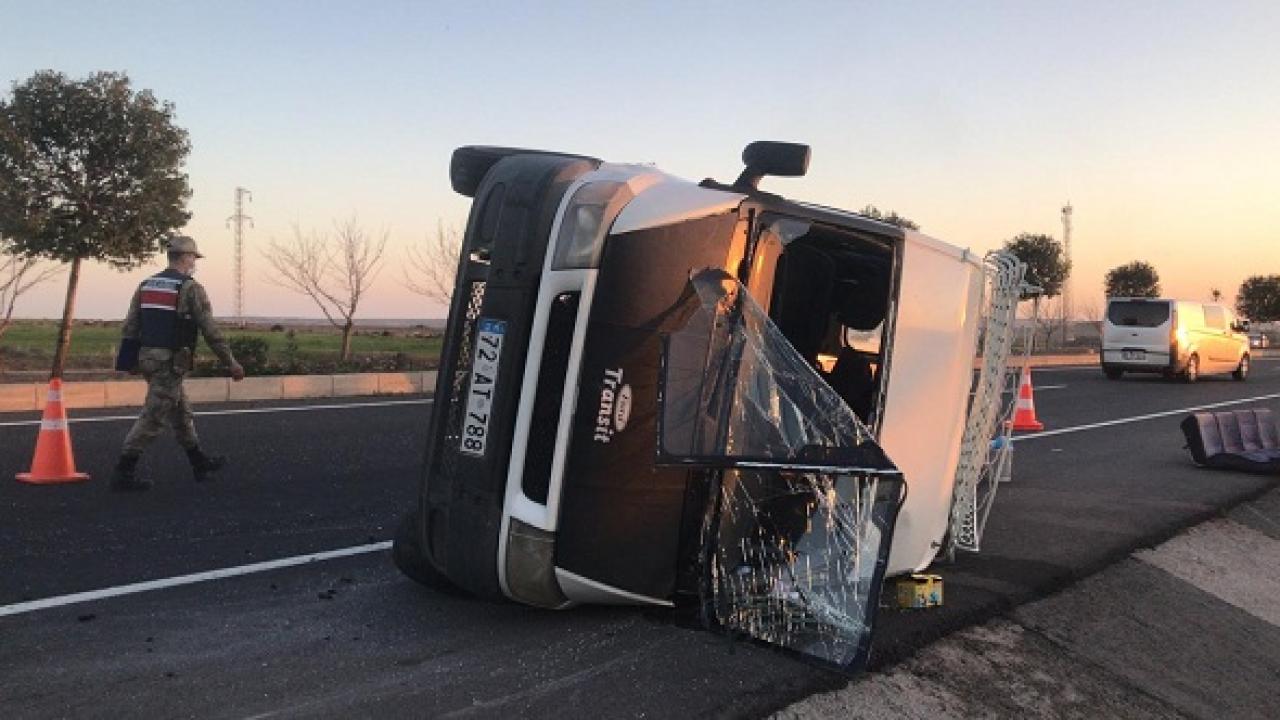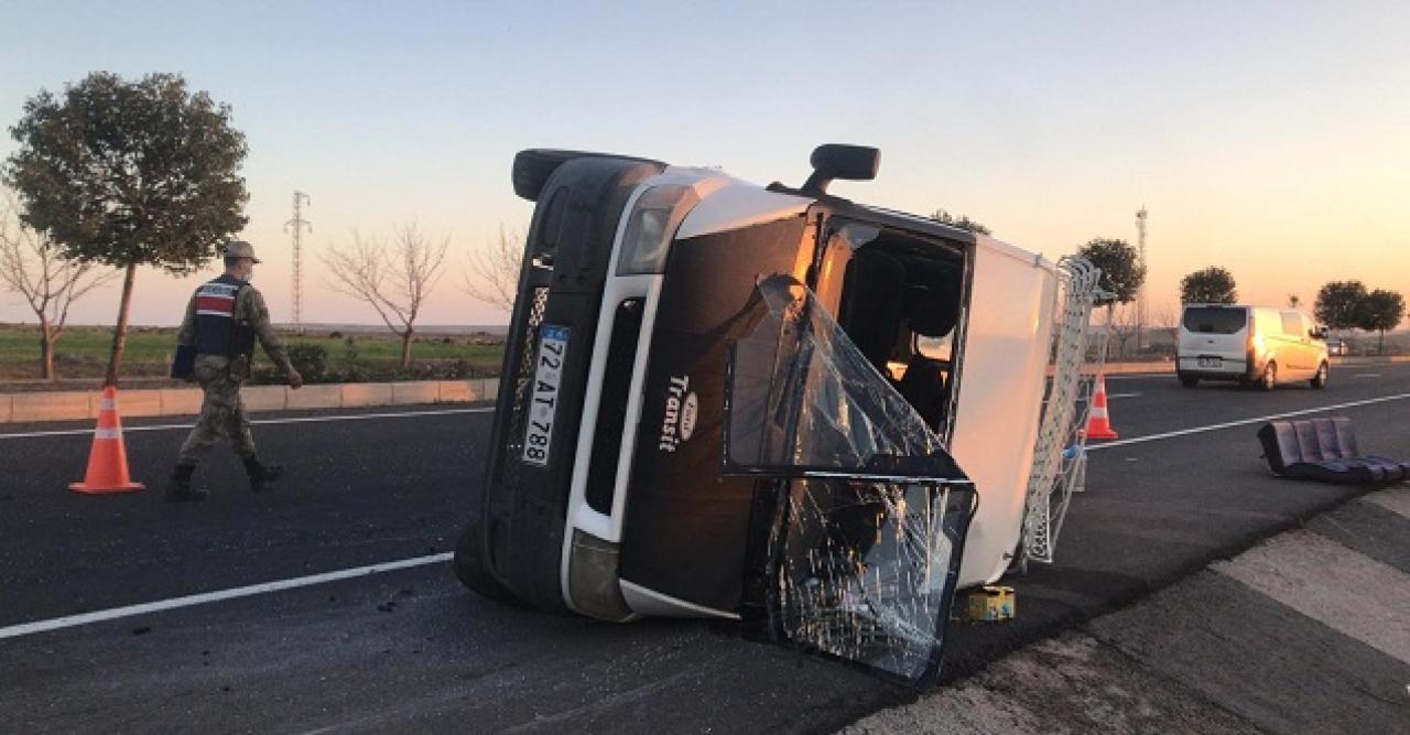 Şanlıurfa’da, mevsimlik tarım işçilerinin taşındığı minibüs, lastiğinin patlaması sonucu yoldan çıkarak bir anda yan yattı. Kazada yaralanan 12 kişi hastanede tedavi altına alındı.