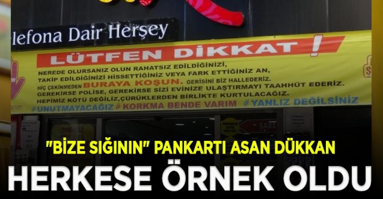 İzmit'te telefon aksesuarları satan bir iş yeri, kapısına, rahatsız ya da takip edilen kadınlara, "Bize sığının, gerisini biz hallederiz. Gerekirse polise, gerekirse sizi evinize ulaştırmayı taahhüt ederiz. Hepimiz kötü değiliz, çürüklerden birlikte kurtulacağız" yazılı pankart asarak, çağrıda bulundu.Ömerağa Mahallesi İstiklal Caddesi'nde telefon aksesuarları satan bir iş yeri, kapısına yaklaşık 4 metre genişliğinde pankart asarak, şiddet mağduru kadınlara 'Yanınızdayız' mesajı verdi. Üzerinde, "Kadına şiddete karşı buradayım de" yazısı bulunan pankartta, "Nerede olursanız olun, rahatsız edildiğinizi, takip edildiğinizi hissettiğiniz veya fark ettiğiniz an, hiç çekinmeden buraya koşun. Gerisini biz hallederiz. Gerekirse polise, gerekirse sizi evinize ulaştırmayı taahhüt ederiz. Hepimiz kötü değiliz, çürüklerden birlikte kurtulacağız" şeklinde yazan pankarttan, Türkiye genelindeki 10 şubeye asıldığını belirten işletme müdürü Recep Tayyip Canlı, şunları söyledi:"Artık bu şiddet olaylarından sıkıldığımız bu konuda bir farkındalık yaratmak istedik. Bütün şubelerimizde şu anda bu pankartlarımız asılı. Bir farkındalık yaratmaya çalışıyoruz. Herkesten bekliyoruz. Bu şiddet olayları artık azalsın, artık haberlerde bunları görmeyelim. Çünkü can yakıcı bir şey. Bir kadına dokunmak, bir kadına saldırmak kötü bir şey. O yüzden böyle bir yola çıktık. Maksadımız farkındalık oluşturmak. Burada olduğumuzu göstermek. Şu ana kadar İstanbul şubemizde böyle olaylar yaşandı. Gerekeni yaptık."