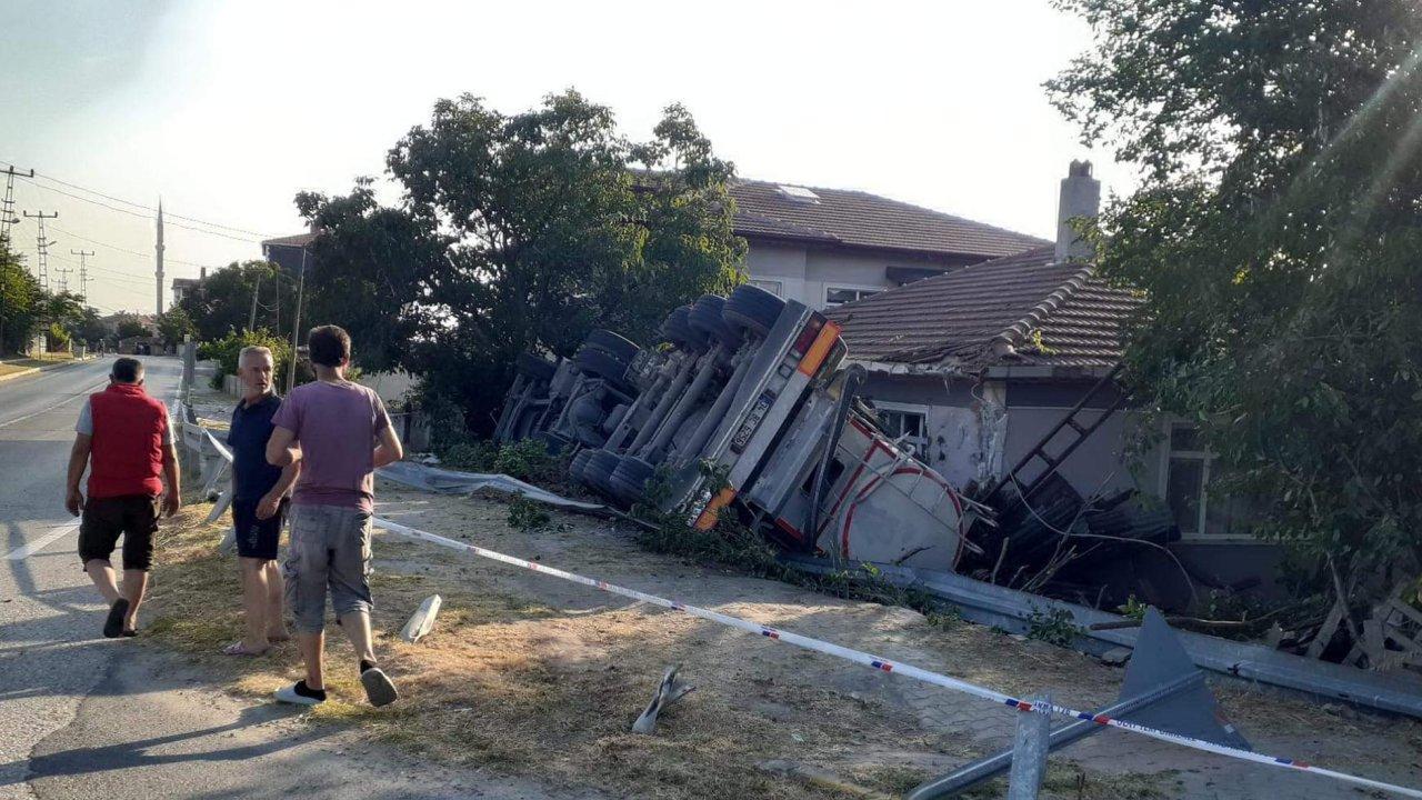 Kaza, saat 04.30 sıralarında, Saray ilçesi Çukuryurt Mahallesi'nde meydana geldi. Kimyasal toz yüklü 34 BC 6256 plakalı tanker, virajda sürücüsü Gökhan Karakoç'un (38) kontrolünü yitirmesiyle yan yatıp, yol kenarındaki tek katlı eve çarptı. Tanker ve evin duvarında hasar meydana gelirken, sürücü ile evdeki Fevziye Güler ve eşi Rahmi Güler, kazayı yara almadan atlattı. Fevziye Güler, uyudukları sırada bomba patlar gibi ses duyduğunu belirterek, "Deprem mi oldu anlayamadım. Camlar, çerçeveler yerinden oynadı. Evin bahçesindeki ağaç tuttu onu" dedi.