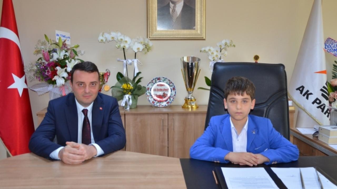 Ak parti Silivri İlçe Başkanı Mutlu Bozoğlu, 23 Nisan Ulusal Egemenlik ve Çocuk Bayramı dolayısı ile makamını temsili olarak Silivri Yunus Emre İmam Hatip Ortaokulu öğrencisi Yahya Kazdal’a devretti.
