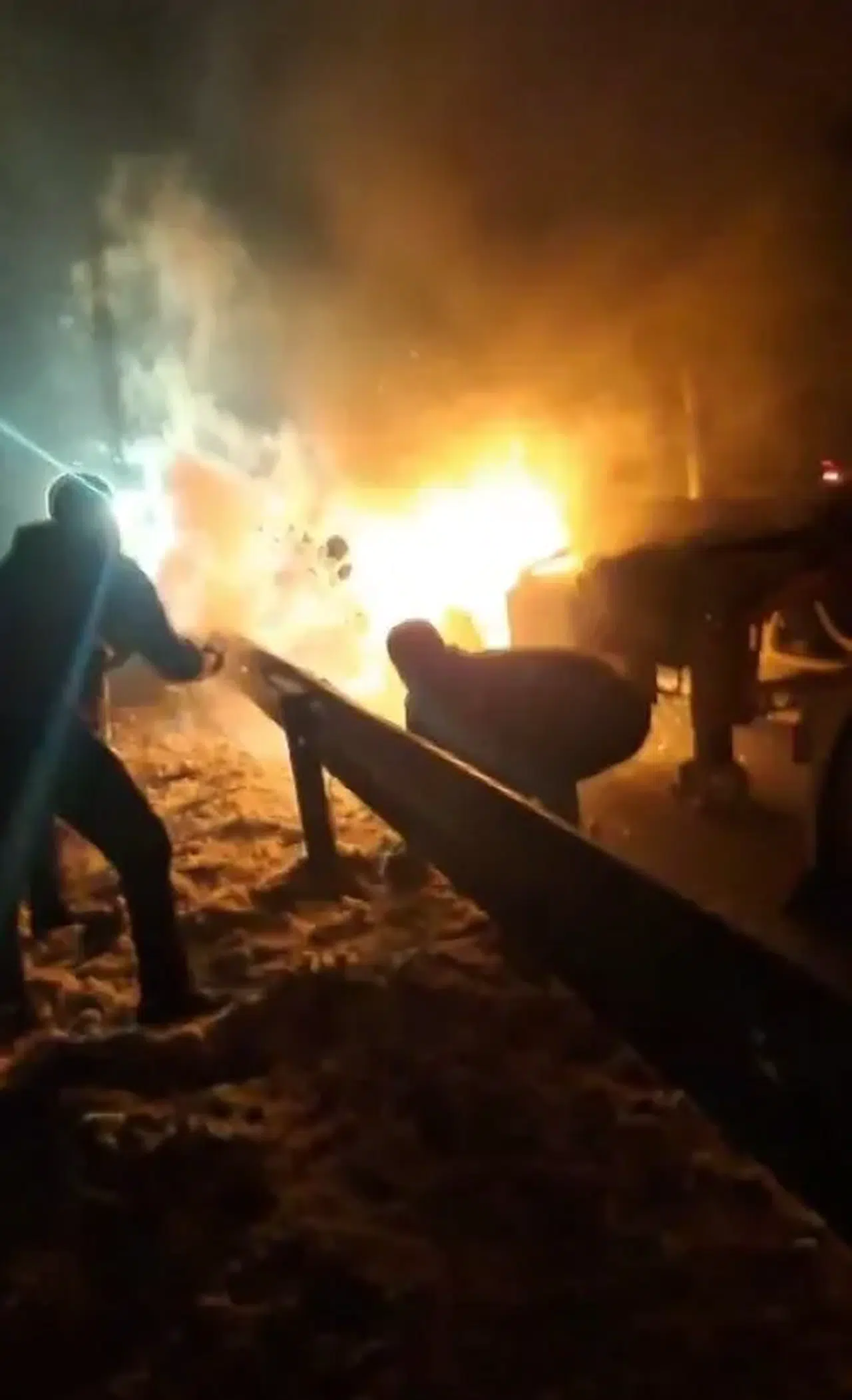 Sivas’ta bir tırın yakıt deposunda çıkan yangın paniğe neden olurken, alevleri söndürmek isteyen vatandaşların elleriyle kar atarak müdahale etmesi kameralara yansıdı.