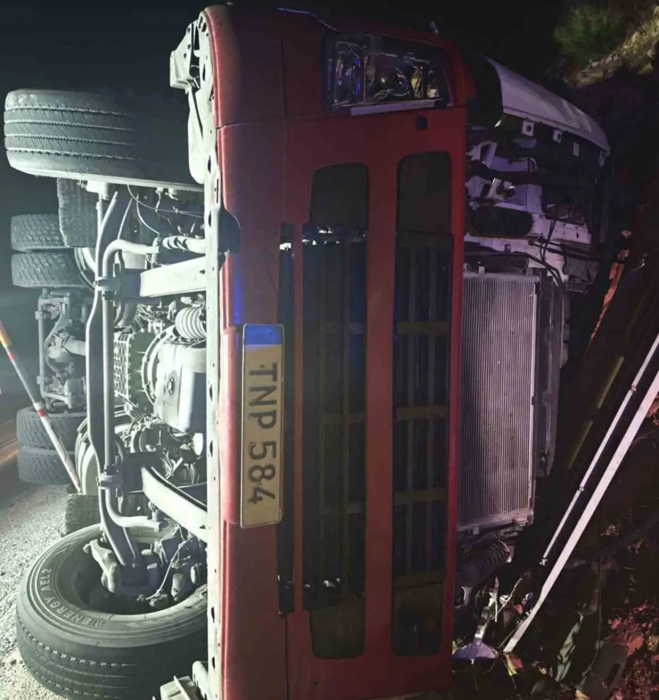 Alınan bilgiye göre Mut istikametine seyir halinde olan Akif Asilkan idaresindeki TNP 584 yabancı plakalı tır, sürücüsünün direksiyon hakimiyetini kaybetmesi sonucu kontrolden çıkarak devrildi.