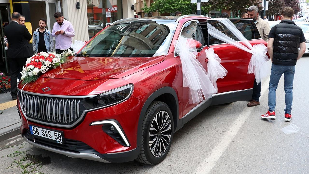 Gelin Habibe Özdemir ise Togg'da güvenlik görevlisi olarak çalıştığını dile getirerek, "Çok heyecanlıyım. Hem üzüntülüyüm hem de çok mutluyum. Aslında Hüseyin ben ilk Togg'a girdiğimde, 'Kırmızı rengini bize versinler de gelin arabası yapalım.' demişti. Bunun üzerine kırmızı Togg gelin arabası oldu. Rabbim nasip etti." dedi.
