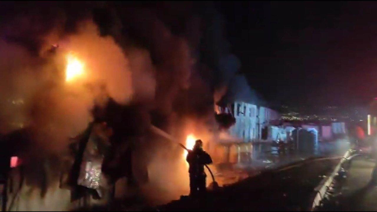 Kahramanmaraş'ta TOKİ şantiyesinde işçilerin kaldığı konteynerlerde çıkan yangın kısa sürede yayıldı. İtfaiye ekiplerinin 33 araçla müdahale ettiği yangın kontrol altına alınırken, 18 konteyner kullanılamaz hale geldi. Kahramanmaraş Valisi Mükerrem Ünlüer, elektrik kontağından çıktığı tahmin edilen yangında can kaybı ve yaralanan olmadığını söyledi.