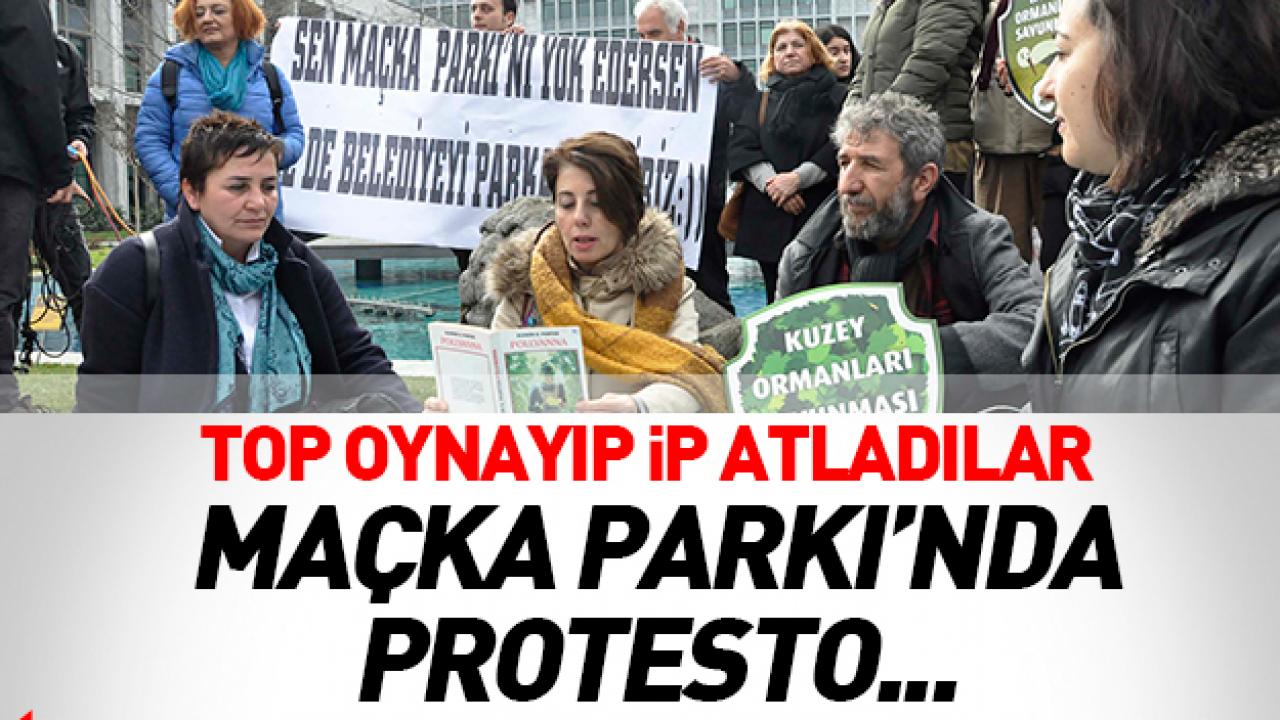 Maçka Parkı'na yapılan tünel inşaatını protesto etmek için toplanan grup İBB'nin Fatih'teki binasının önünü adeta park alanına çevirdi. CHP İl Başkanı Canan Kaftancıoğlu ve meclis üyelerinin de destek verdigi eylemde grup üyeleri belediye önünde ip atlayıp top oynadı.