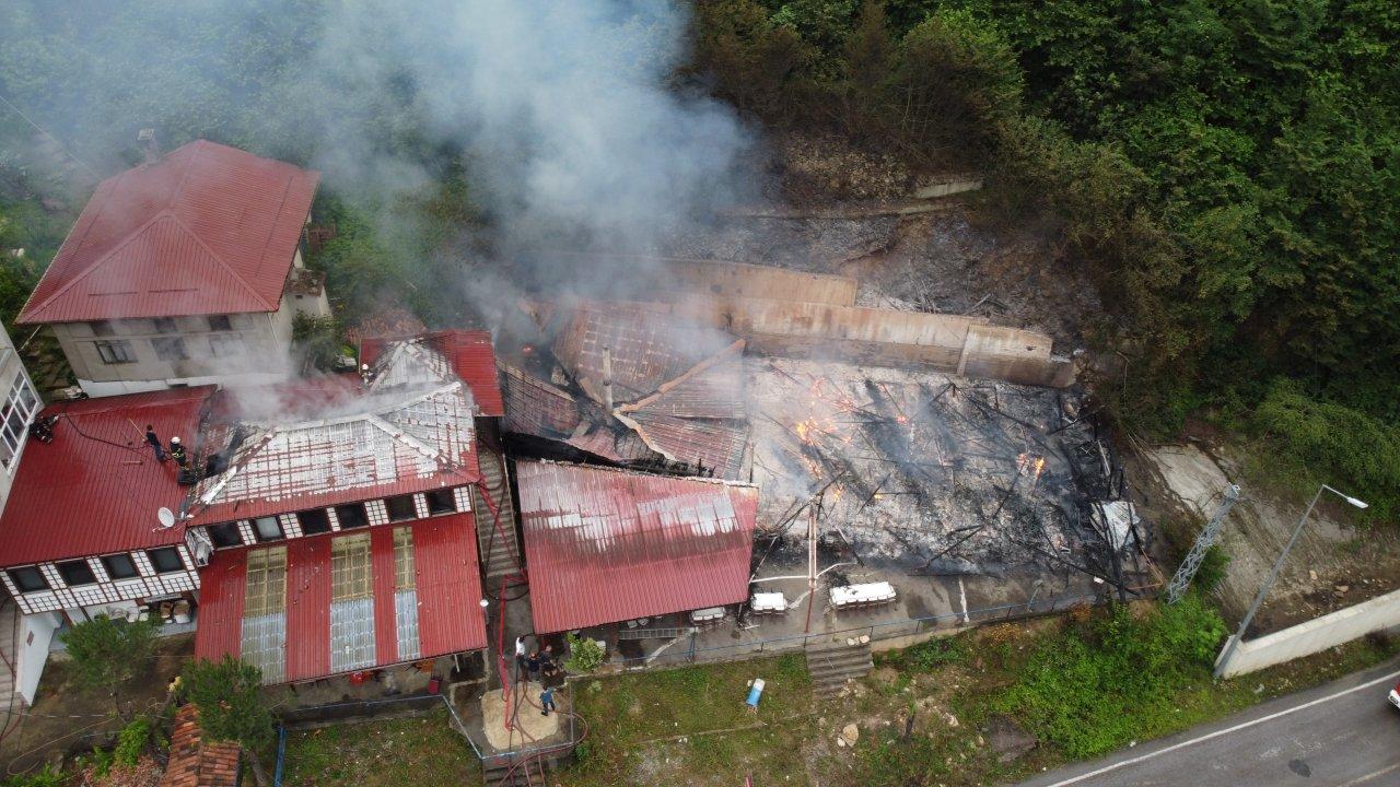 Trabzon'un Dernekpazarı ilçesinde düğün salonunda çıkan yangın, itfaiye ekipleri tarafından söndürüldü. Yangında düğün salonu ve bitişiğindeki pansiyonda hasar oluştu.