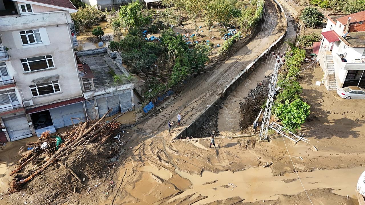 Bölge halkı, selin hasar verdiği, park halindeki otomobil, tarım arazileri, ev ve işyerlerinde oluşan balçık temizliğini sürdürdü.