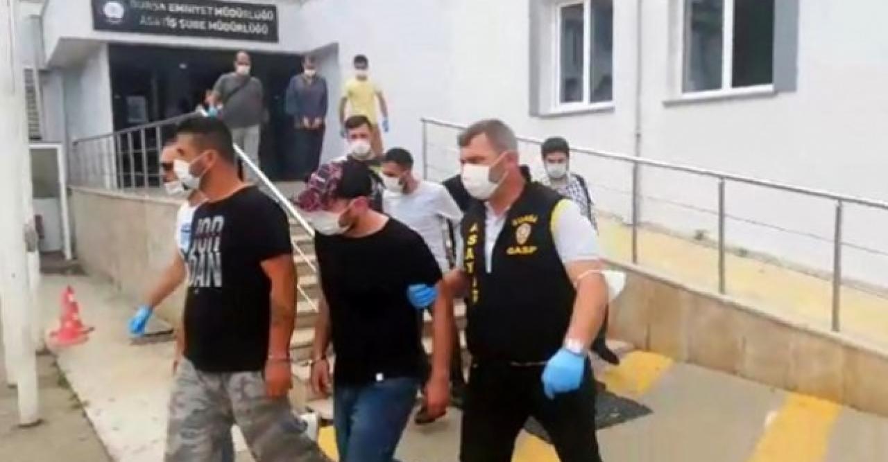 L.G'nin ihbarı üzerine Bursa Asayiş Şube Müdürlüğü Gasp Büro Amirliği ekipleri tarafından kurulan özel bir ekip şüphelilerin peşine düştü. Olayların yaşandığı bölgede 200 güvenlik kamerasını inceleyen ekipler, şüphelilerin V.D., C.Y., A.S, S.K. ve A.A. olduğunu tespit etti. Ekipler, şüphelileri Hürriyet Mahallesindeki ikametlerinde yakalayarak gözaltına aldı. Emniyetteki işlemlerinin ardından adliyeye sevk edilen 5 şüpheli tutuklanarak cezaevine gönderildi.