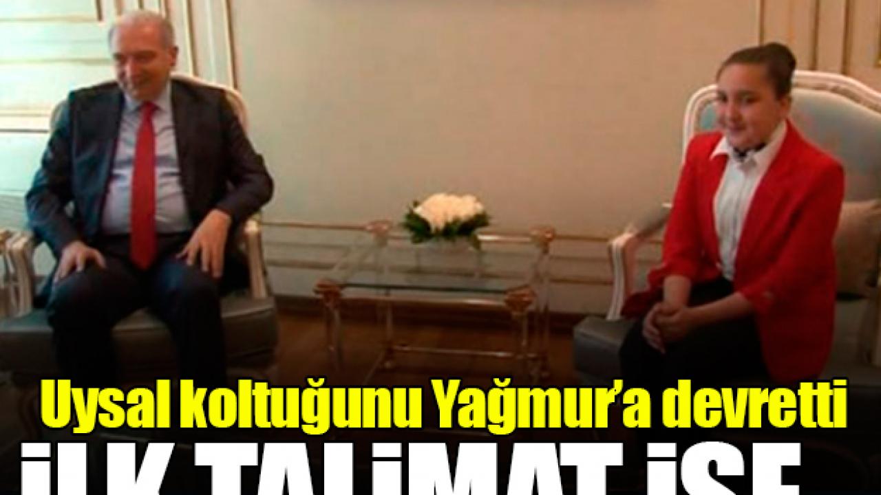 İstanbul Büyükşehir Belediye (İBB) Başkanı Mevlüt Uysal, 23 Nisan Ulusal Egemenlik ve Çocuk Bayramı kapsamında makam koltuğunu 7. sınıf öğrencisi Yağmur Özer'e devretti.