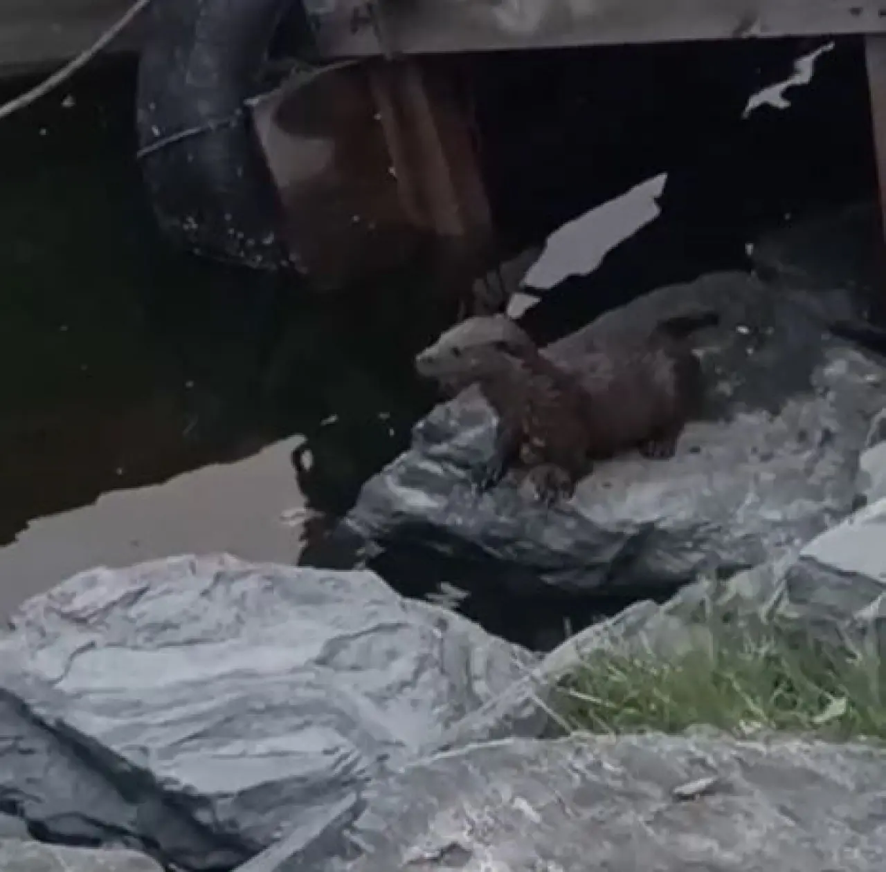 Su samurunu fark eden vatandaşlar, cep telefonlarıyla o anları kaydetti. Bir süre taşların üzerinde duran su samuru, ardından yüzerek gözden kayboldu.