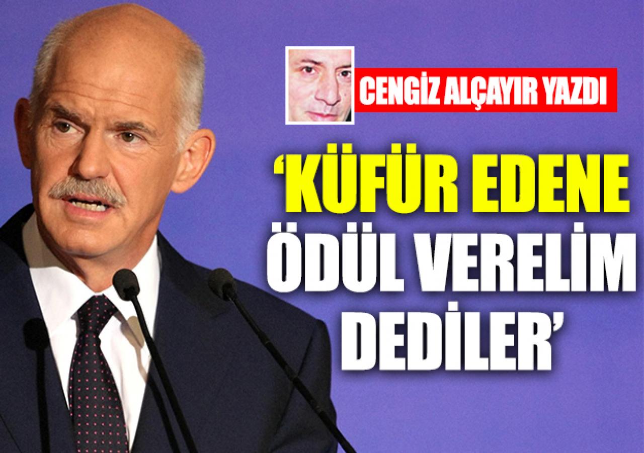 Yorgo’nun, Kıbrısta’ki Türk askerine işgalci demesinden dolayı Vefa ödülüne layık görüldüğünü filan düşünme, o, sadece kriterlerden birisiydi. Baktılar, kendilerine insan gibi davranana küfür etme gibi bir huyları var, o zaman biz de bize küfür edene ödül verelim dediler, gittiler, Yunan kardeşimiz Yorgo Papandreu’yu bulup getirdiler.