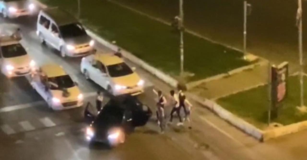 Diyarbakır'da koronavirüs tedbirleri kapsamında yasaklanmasına rağmen oluşturulan düğün konvoyu, kırmızı ışıkta durdu, konvoya katılanlar araçlarından inip, halay çekti.