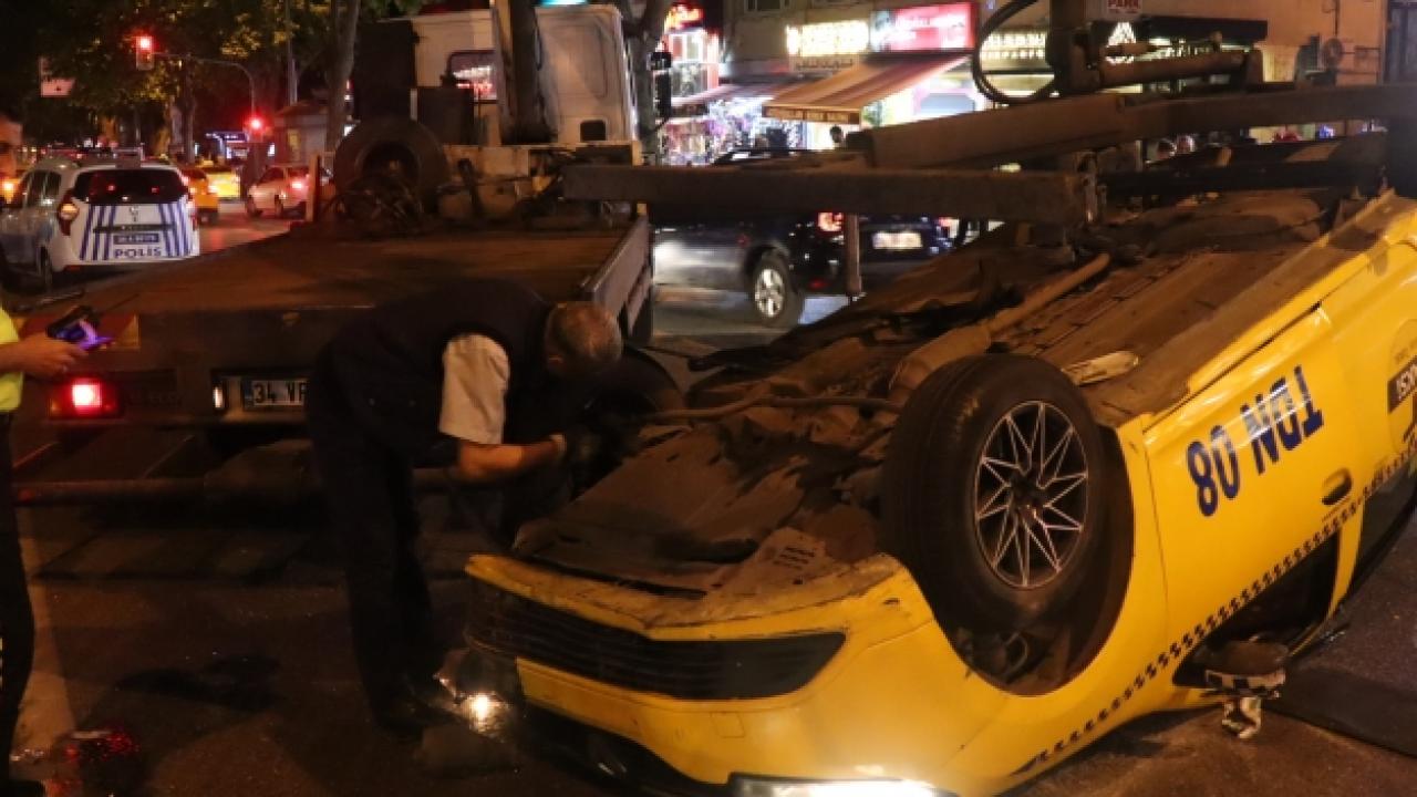 Fatih'te, sürücüsünün direksiyon hakimiyetini kaybettiği taksi kaldırıma çarparak takla attı. Takside bulunan, biri sürücü, biri yolcu olmak üzere, iki kişi yaralandı