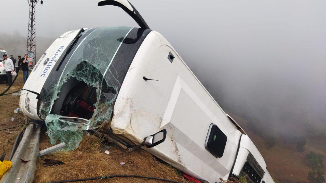 DHA- Mersin'in Anamur ilçesinde yağış ve sis nedeniyle kontrolden çıkan yolcu otobüsü, dağ yamacına çarpıp, şarampole yuvarlandı. Kazada ilk belirlemelere göre, çok sayıda kişi yaralandı.